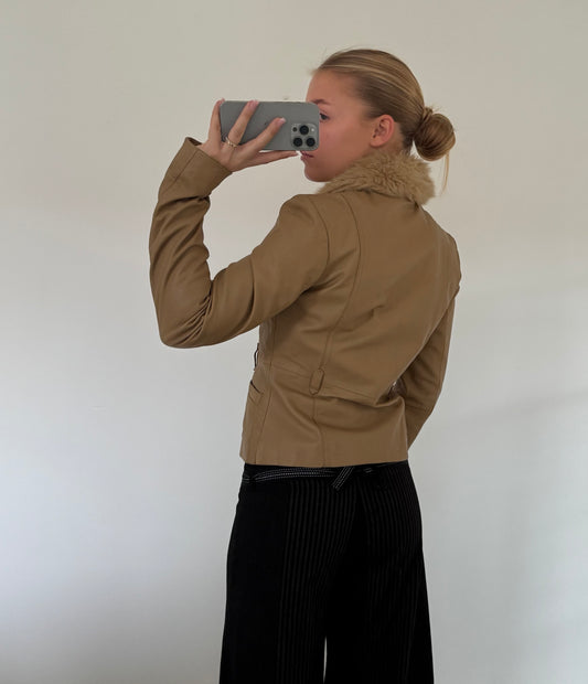 Læderjakke med pels