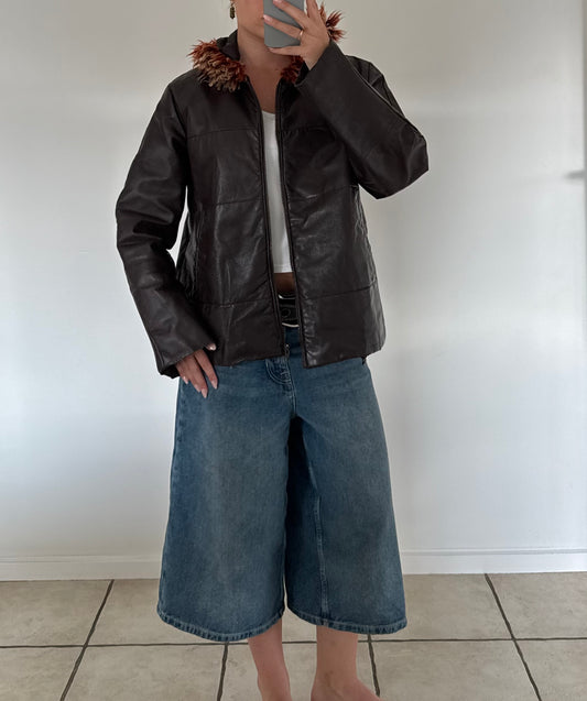 Læderjakke med pels