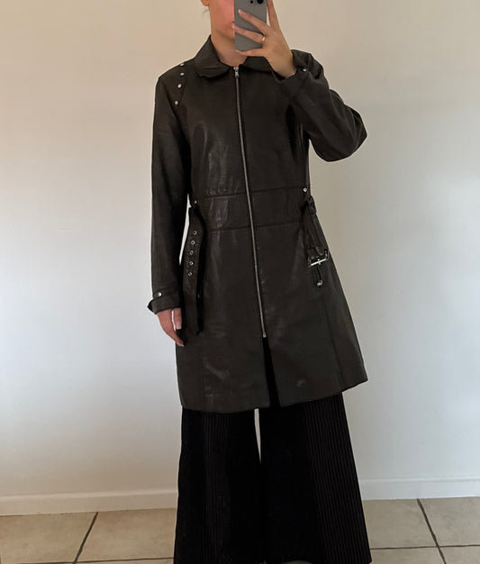 Læderjakke med hætte